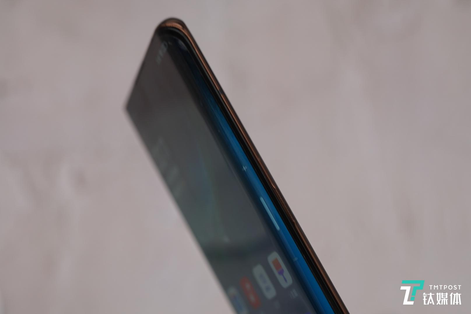 瀑布屏的设计带来极佳视觉观感的同时,当然也对机身的设计带来了一些影响,尤其是前置摄像头的打开方式以及位于两侧的音量键和电源键。前置摄像头的方式采用了顶部弹出式,侧面按键则被隐藏了起来。
